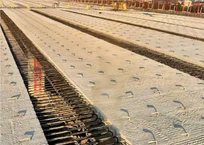騰龍大路二期項目全長約4.3公裏,目前已完結28孔梁板架設,154個預制墩柱安裝,占悉數施工總數的45%。為保證工序聯接,項目在具備濕接縫及端。