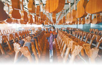 经过10余年的发展,正安已经拥有完整的吉他产业链。“目前我们有吉他制造及其配套企业139家,任何一个吉他配件都可以在园区内找到。”贵州正安经济开发区管委会副主任代祥飞介绍,国际吉他产业园的吉他年产销量达到220万把,出口40多个国家和地区,2023年出口额达11.13亿元人民币。